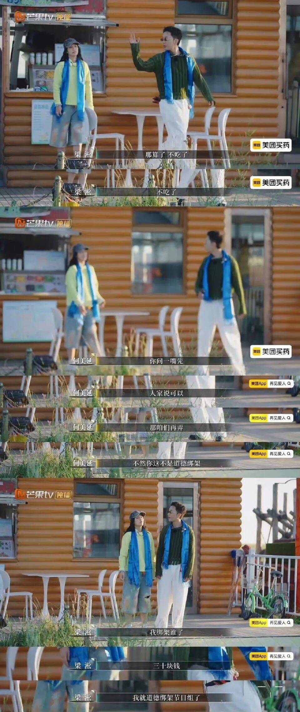 但实际上不说他们平常生活如何,单说在节目里,何美延就不止一次给梁淞道歉来着。