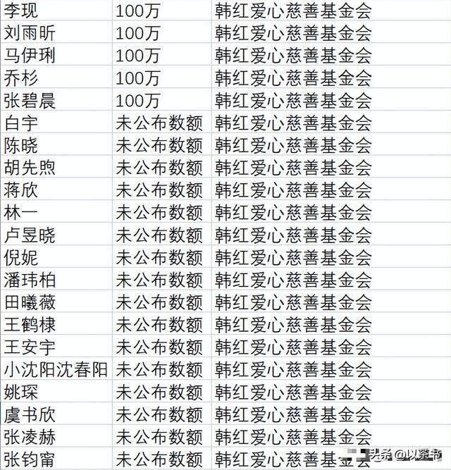 在韩红基金会的捐款名单里,好些个名字,都带着各自的故事和光环。
