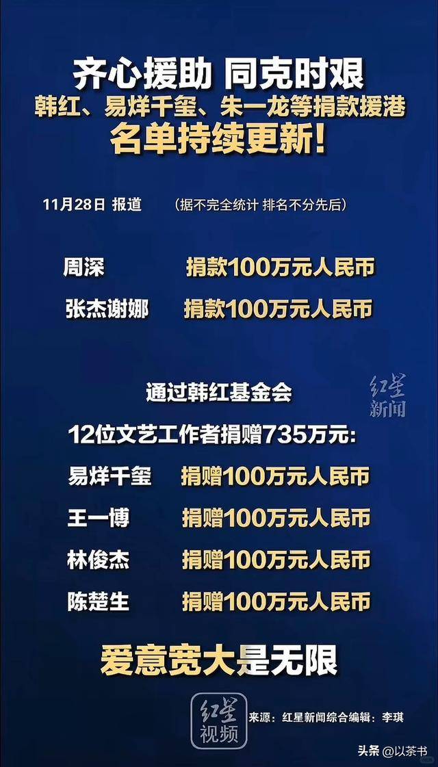 这个数字,无论是参与人数还是捐款金额,都刷新了这次演艺圈援助的新纪录。