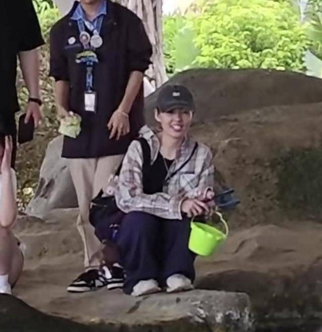 照片中,郭碧婷穿着朴素的格子衬衫和运动裤,完全没有明星架子,看起来更像是动物园工作人员。