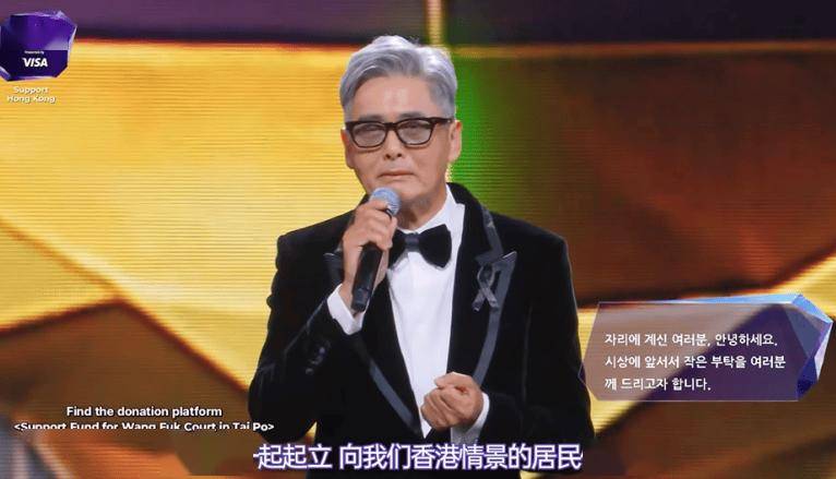 这次的颁奖典礼,在香港启德体育园主场馆举办,每次出场的主持人,都会表达对香港火灾事件的痛心。