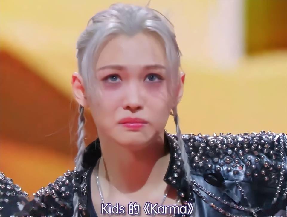 25岁的李龙馥在镜头前一度哽咽,这一头银发配上粉嫩的妆造,倒是别具一格,在一众浓妆中辨识度比较高。