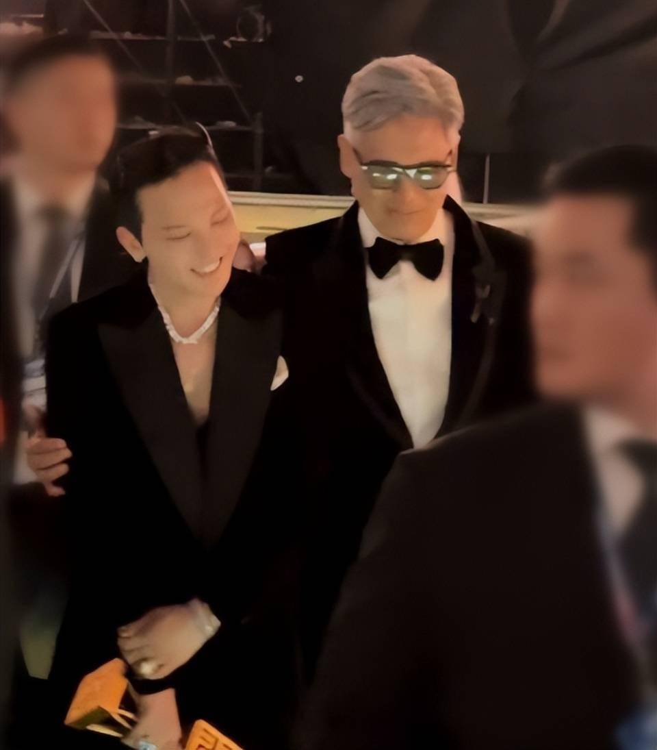 最后离场时,权志龙亲昵地挽着周润发的胳膊。