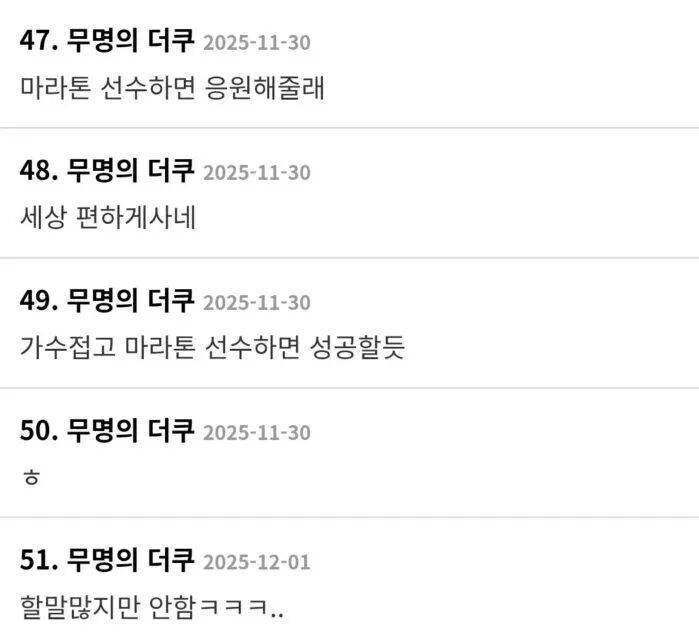 在这条动态的评论区,画风迅速分裂。不少网友留下了充满讽刺意味的留言:“如果她成为马拉松选手,我会为她加油”、“她看起来过得无忧无虑”、“如果放弃唱歌去当马拉松运动员,说不定会很成功”。这些评论虽未直接点明,但字里行间暗指在团队面临重大危机时,成员似乎“过于专注个人生活”,隐含着对其事业心的质疑。
