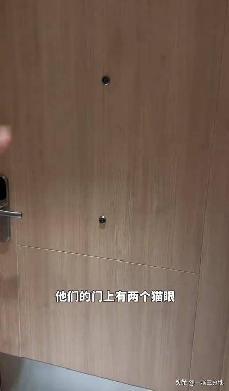来到房间门口,看到一上一下两个猫眼,上面这个是方便行动正常的老人查看情况,下面这个呢则是为了坐轮椅的老人也能够看得到外面。