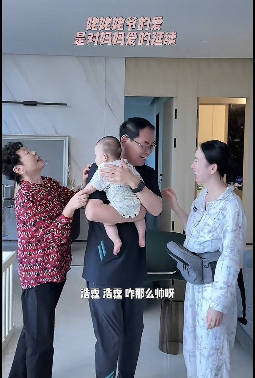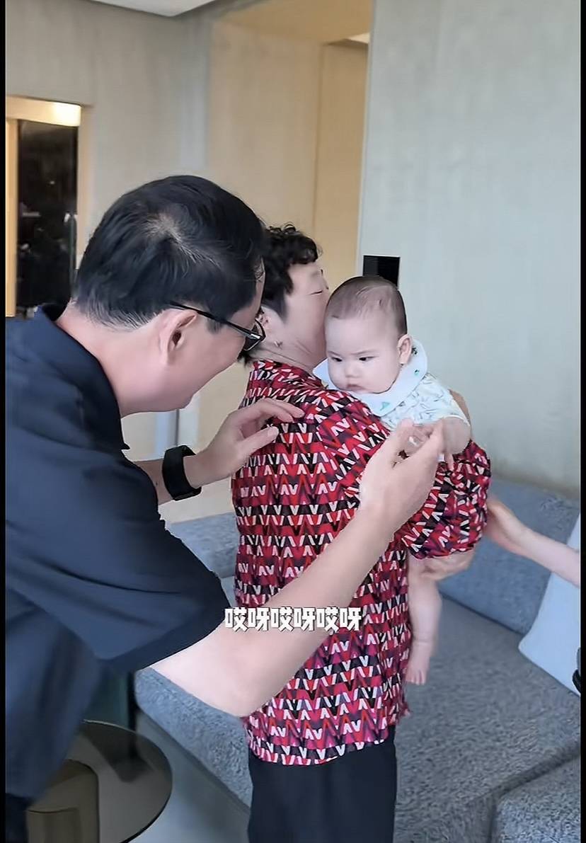 张檬的爸爸,看起来还是抱娃的新手,抱着外孙子有点小心翼翼的。没有张檬妈妈那么熟练,毕竟几个月的孩子软乎乎的,抱起来还真的是得十分谨慎。