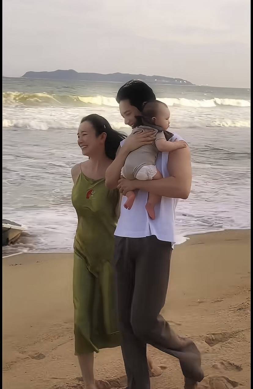 小五穿浅驼色双排扣呢大衣,抱着8个月的儿子、面对张檬一脸笑意。他们的儿子频繁出镜,胖嘟嘟的很可爱。