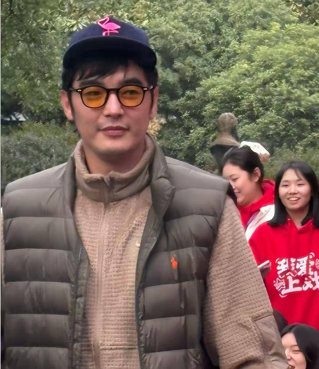 仔细看陈赫穿了件灰色卫衣配运动裤,头发乱糟糟的,40岁了还一副大男孩样,脸圆圆的,笑起来眼睛眯成缝,状态松弛得像度假。