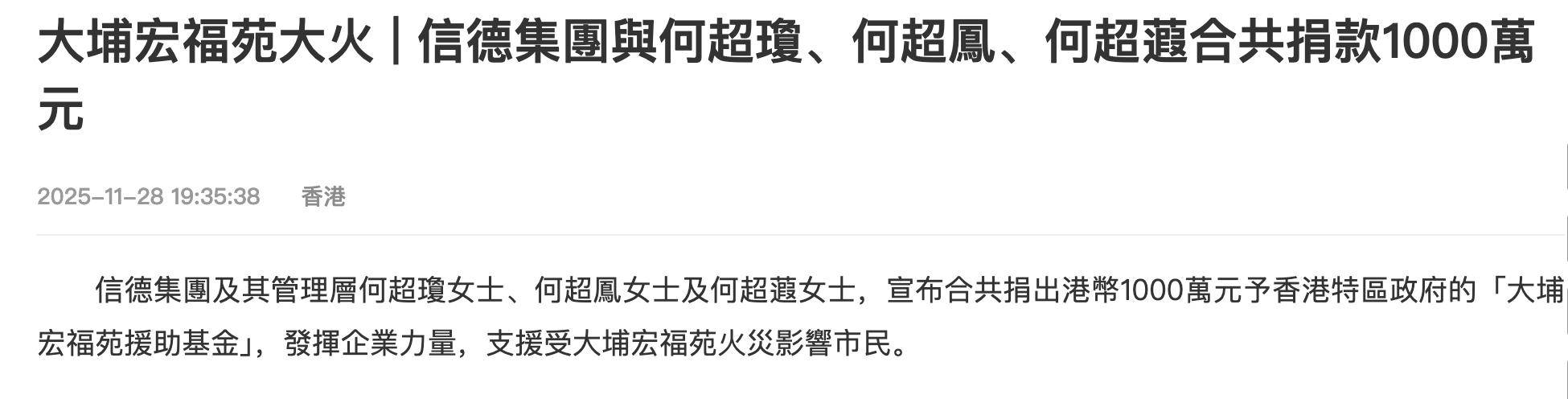 何鸿燊有四个妻房,真正还在商界中活跃的只有以何超琼为主的二房,以梁安琪为主的四房。不过何鸿燊及其家人的主要产业都在澳门,包括澳博、美高梅,新濠国际,所以也就没有看到其家族以这些产业的名义向香港火灾捐资,转而是以香港公司或是个人的名义捐赠。怎么说呢,何鸿燊家族中的二房、四房在做善事方面一直以来都是不遗余力,都是爱国爱港的企业家,又都长期在香港生活,自然不会袖手旁观。