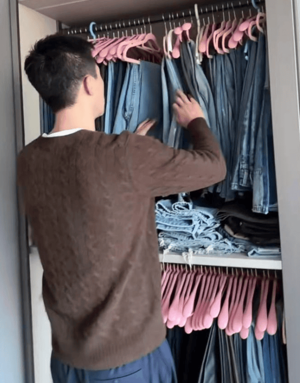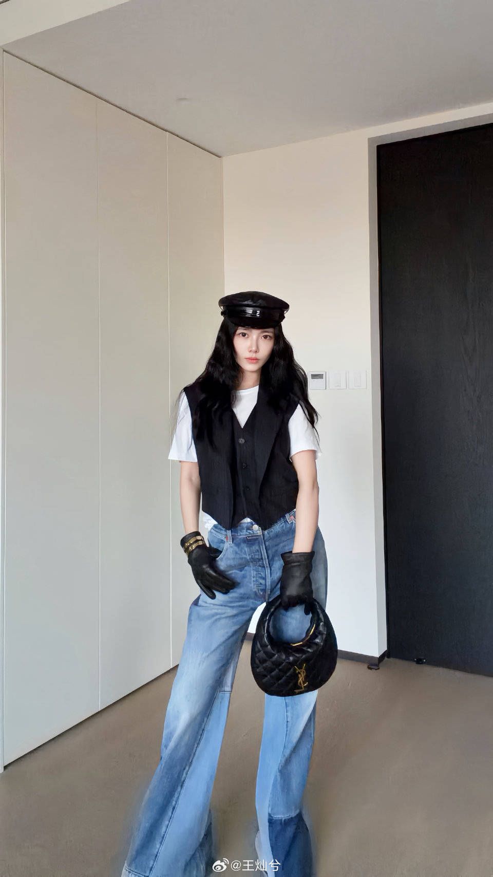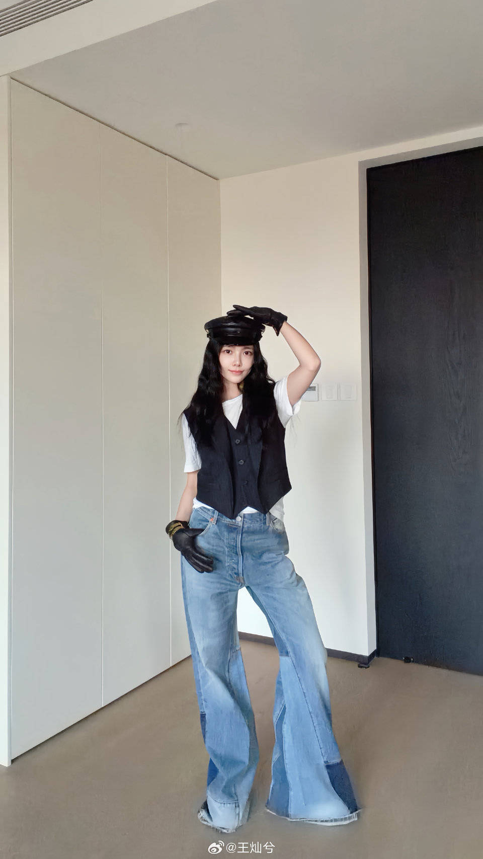 还配文:哈哈,老公给搭配的,大家觉得怎么样?王灿的衣帽间真的是太浮夸了,光是牛仔裤都有上百条,而且只要是喜欢的单品,一律买回来,什么帽子、衣服、包包、饰品,甚至是限量版,都是毫不手软。