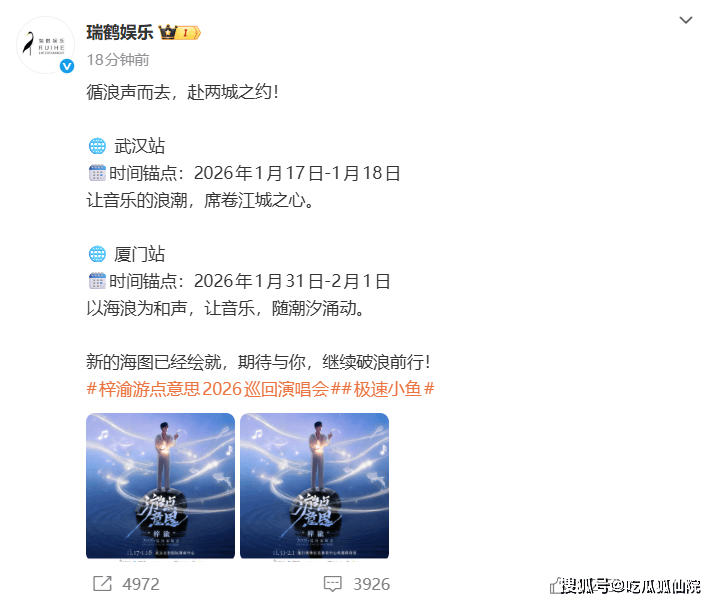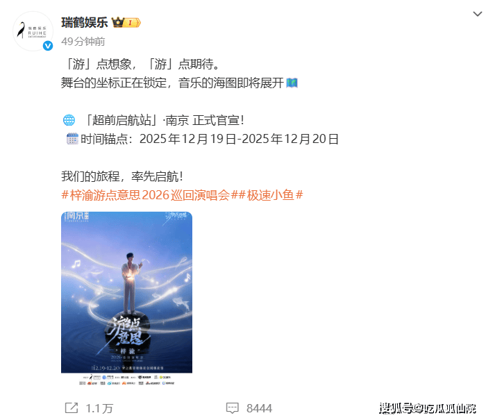 “八月至今,无数个日夜打磨至今,筹备已久”,就在昨天,“#梓渝一天官宣三场演唱会#”的消息如一颗重磅炸弹,在粉丝圈瞬间引爆,让无数粉丝激动不已。梓渝巡演【南京、武汉、厦门】三站同时官宣,一场盛大的音乐狂欢即将拉开帷幕。