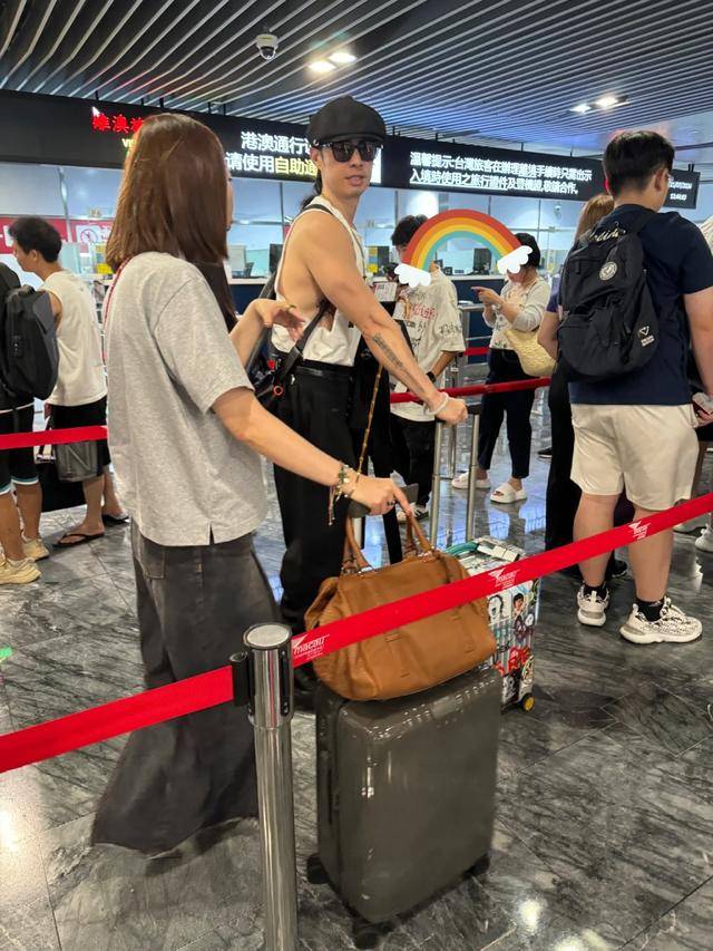 路人在机场偶遇他,吴建豪穿着白色背心,头戴贝雷帽,正一手推着行李箱。