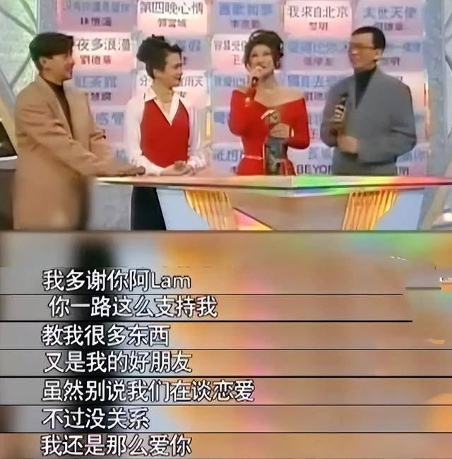 当叶倩文在台上情绪激动时,林子祥只是默默走到她身边,轻轻拍了拍她的肩膀,以示支持。