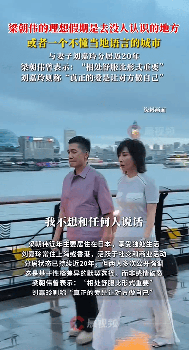 据悉,梁朝伟近年主要居住在日本,享受独处生活,刘嘉玲常住上海或香港,活跃于社交和商业活动,分居状态已持续近20年,但两人多次公开强调,这是基于性格差异的默契选择,而非感情破裂,梁朝伟曾表示:“相处舒服比形式重要”,刘嘉玲则称“真正的爱是让对方做自己”。