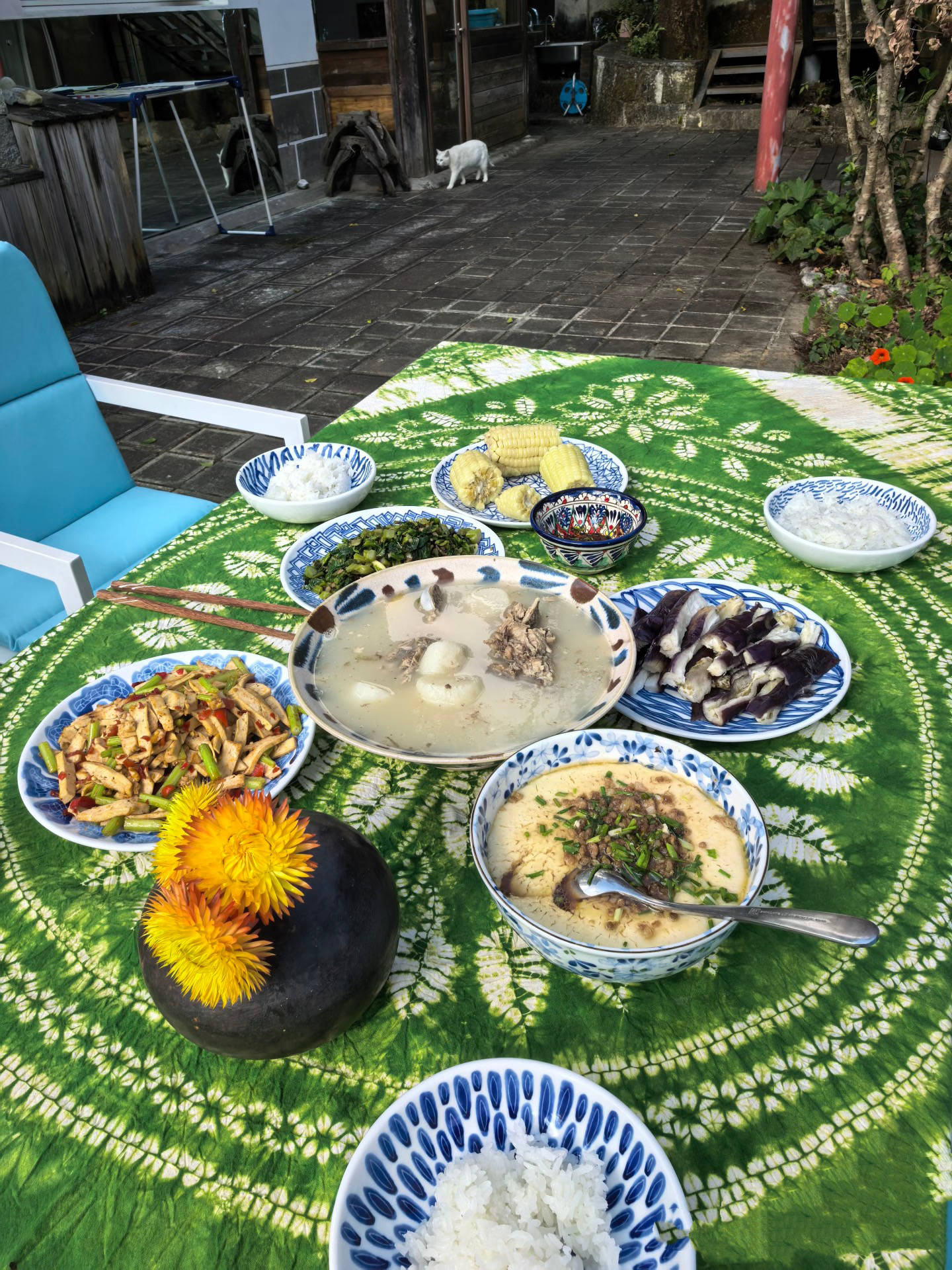 龚琳娜在云南的院子很大,她还种了很多青菜。这里相对空旷,周围几乎都是空地,在后面的山上,还是一片坟地,龚琳娜笑着说自己养猫为伴、一点都不害怕。