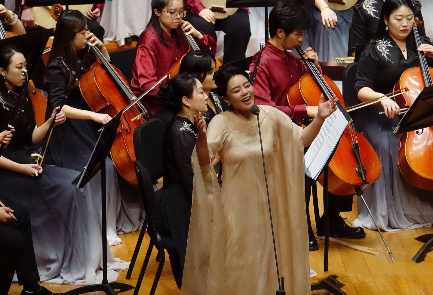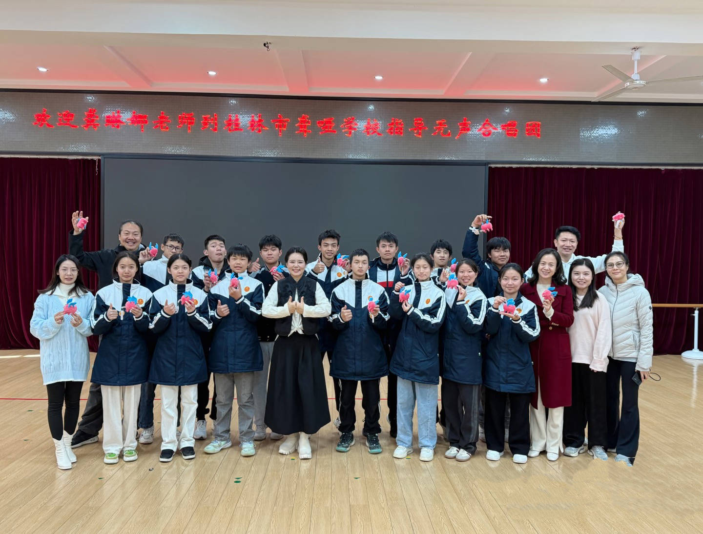 她还热衷于公益事业,希望用自己的音乐去温暖更多的人。到桂林聋哑学校指导无声合唱团,她站在孩子们中间,脸上都是温柔和笑意。