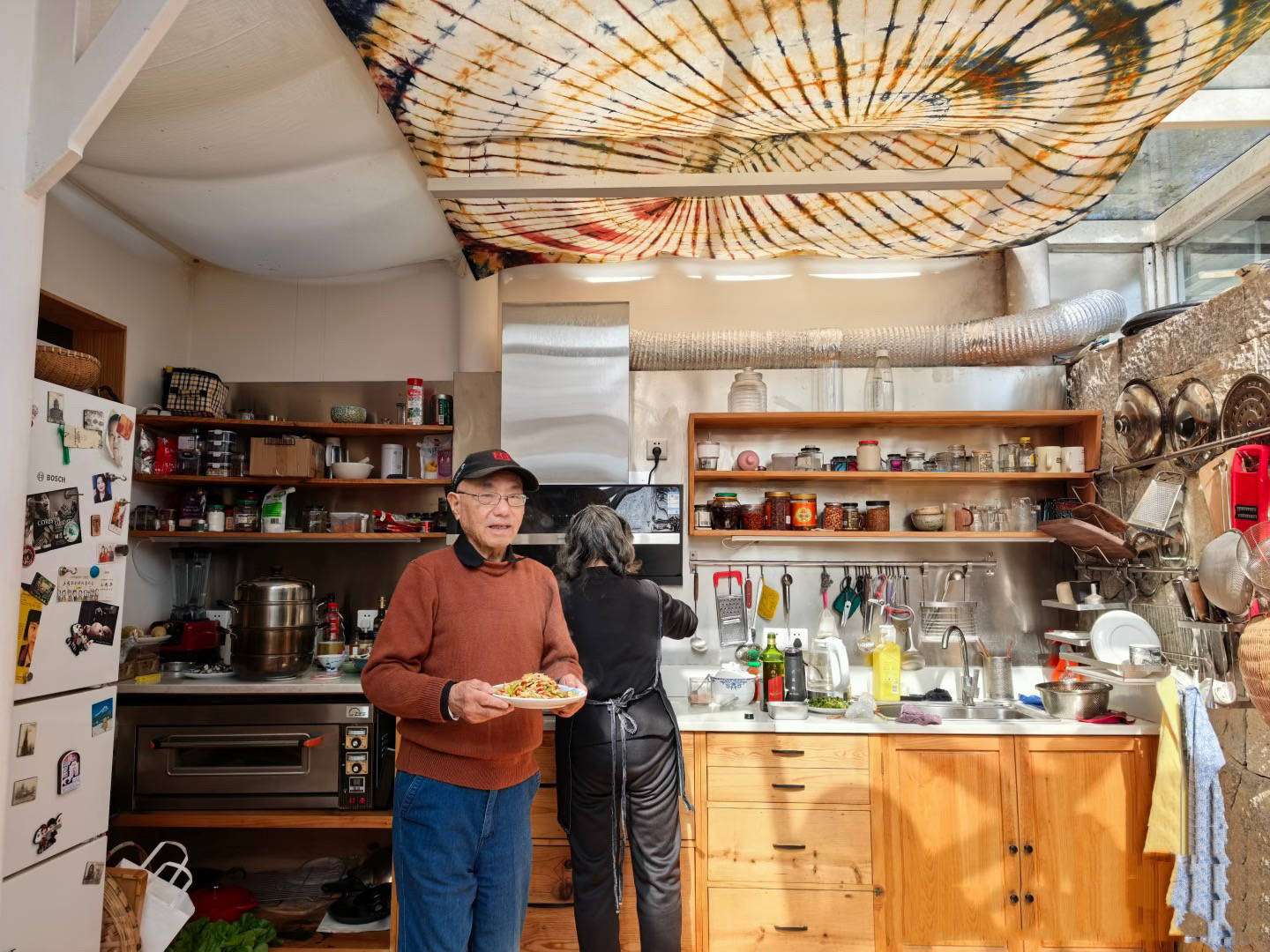 厨房里做了整齐的置物架、爸爸妈妈搬过来和她一起住。50岁了、还有父母陪着,龚琳娜也是超级幸福。