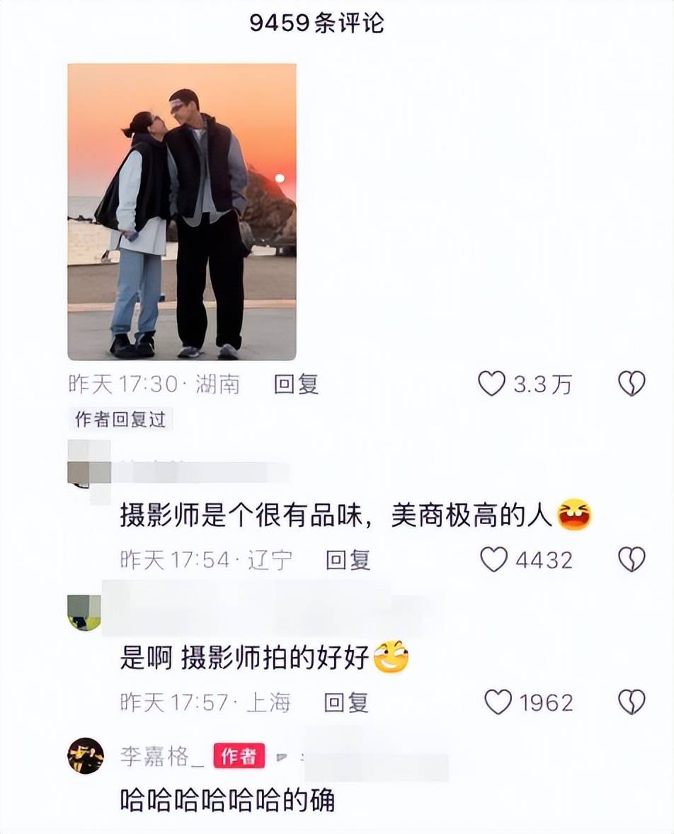 “新生活,刚好合拍。”2025年12月3日,歌手李嘉格在微博与朋友圈同步晒出与男友在夕阳下依偎对视的合照,正式为这段备受猜测的恋情揭晓答案。紧随其后,她在短视频平台更新动态,配以一声甜蜜的“诶呀!”,笑容灿烂。面对网友“照片拍得真好”的留言,她以一连串爽朗的“哈哈哈哈哈哈的确”回应,毫不掩饰当下的幸福。