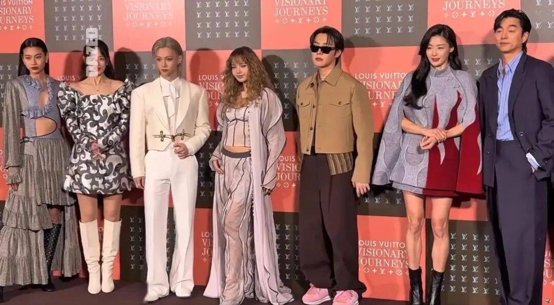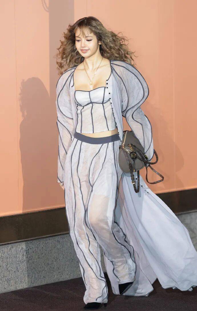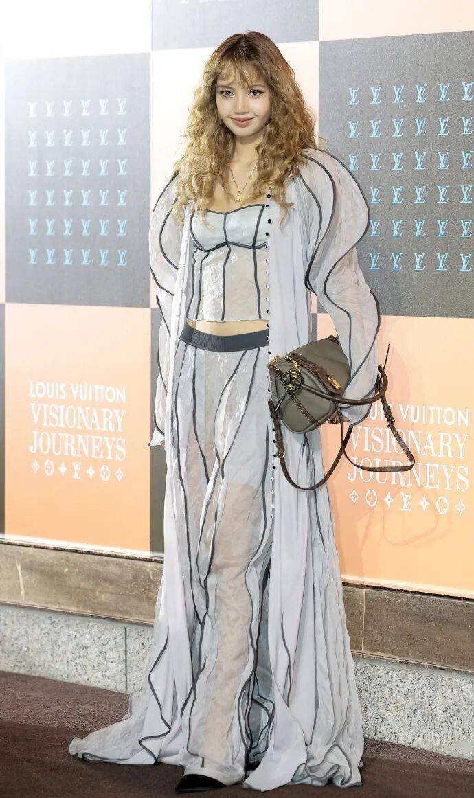 这次活动堪称星光盛宴,郑号锡、Felix、孔刘、全智贤、郑浩妍、申敏儿等七位LV全球大使齐聚。但全场焦点,无疑被一头复古羊毛卷发、状态满分的Lisa牢牢锁定。她身穿的定制款上衣与长裤组合,设计极为大胆:宛如用轮廓线勾勒出的“外露内衣”风格,搭配轻薄透视面料、蓬松袖口与优雅拖尾,被时尚媒体评价为“一件宣言式作品”。网友惊叹:“这造型原版就够震撼,但Lisa完全能直接穿去走秀!”