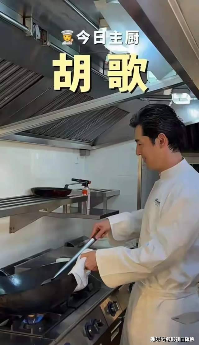 下山后,胡歌穿起厨师服装,有模有样的做起红烧肉。