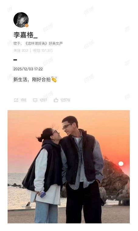 2025年12月初,一张海边的合照在社交平台悄然流传——李嘉格依偎在一位阳光帅气的男子肩头,两人对视而笑,落日余晖洒在脸上,她捂着嘴,眼底却藏不住藏不住的欢喜。这张