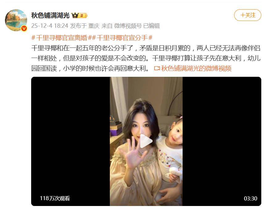 一句“和在一起五年的老公分手了”,让网红千里寻椰的感情状况瞬间冲上热搜。就在网友们纷纷感慨“又一对跨国婚姻破裂”时,当事人亲自下场的一则澄清,直