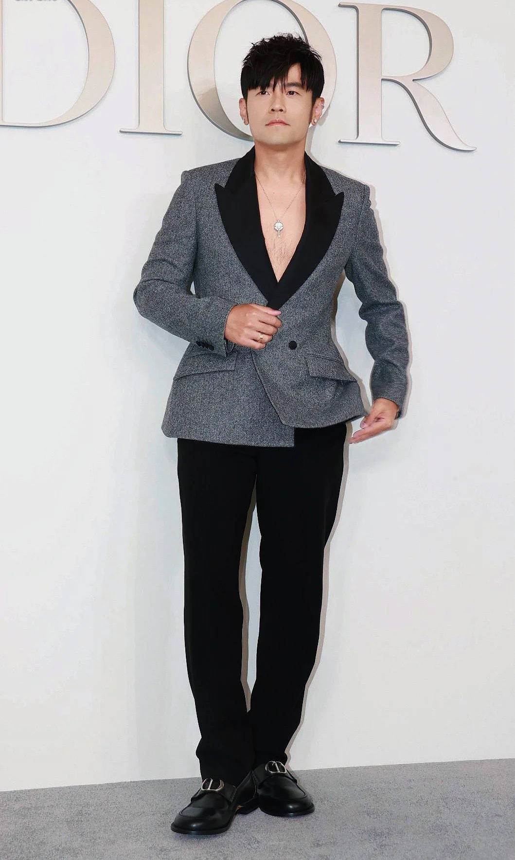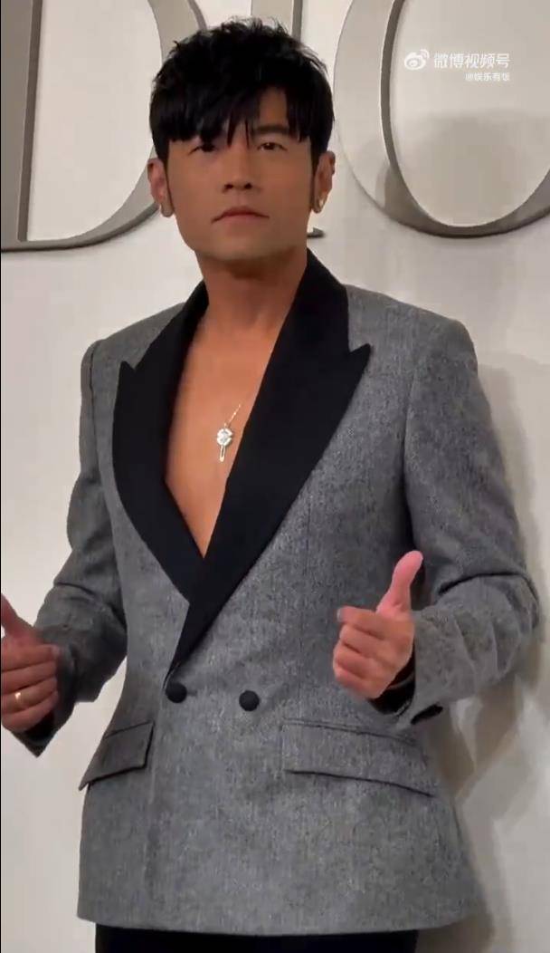 镜头前的周杰伦,以大胆的深V剪裁西装真空上阵,自信展露瘦身后的胸肌与锁骨,搭配铂金耳钉与利落短发,造型冲击力十足。内搭的透视元素更添性感张力,被网友盛赞“瘦回了《简单爱》时期的少年感”。这一形象与2025年6月日本街拍中胡子拉碴、衣着松垮的“憔悴状态”形成鲜明对比,也超越了2025年1月巴黎时装周初显瘦身效果的黑色风衣造型,堪称其年度状态巅峰,现场粉丝的尖叫便是最佳证明。
