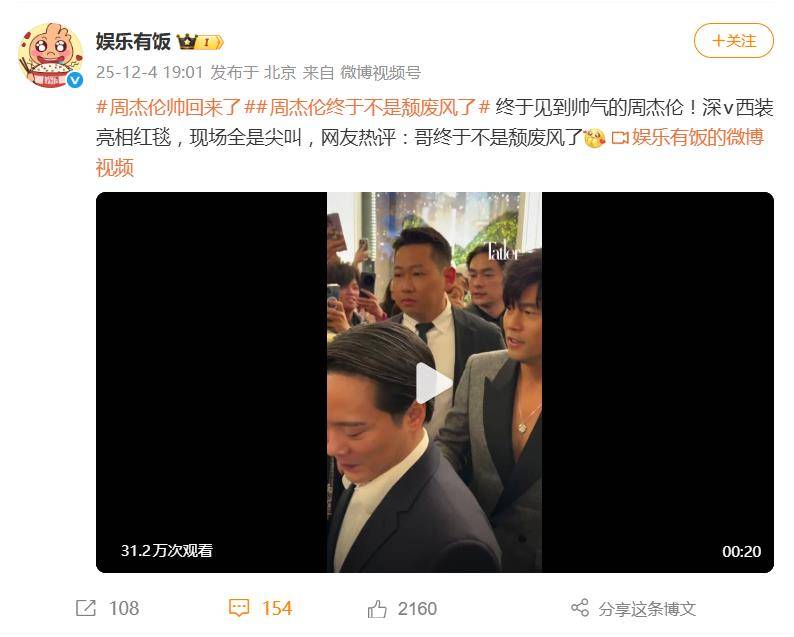 据网友12月4日爆料,当46岁的周杰伦以一袭颠覆性的深V真空西装亮相台北Dior活动,锋利的下颌线与清晰的胸肌线条瞬间点燃全网。这场被粉丝惊呼为“爷青回”的造型蜕变,不仅一举扫清了持续半年的“颓废风”质疑,更同步官宣了迟到两年的新专辑计划,可谓“一击双响”。