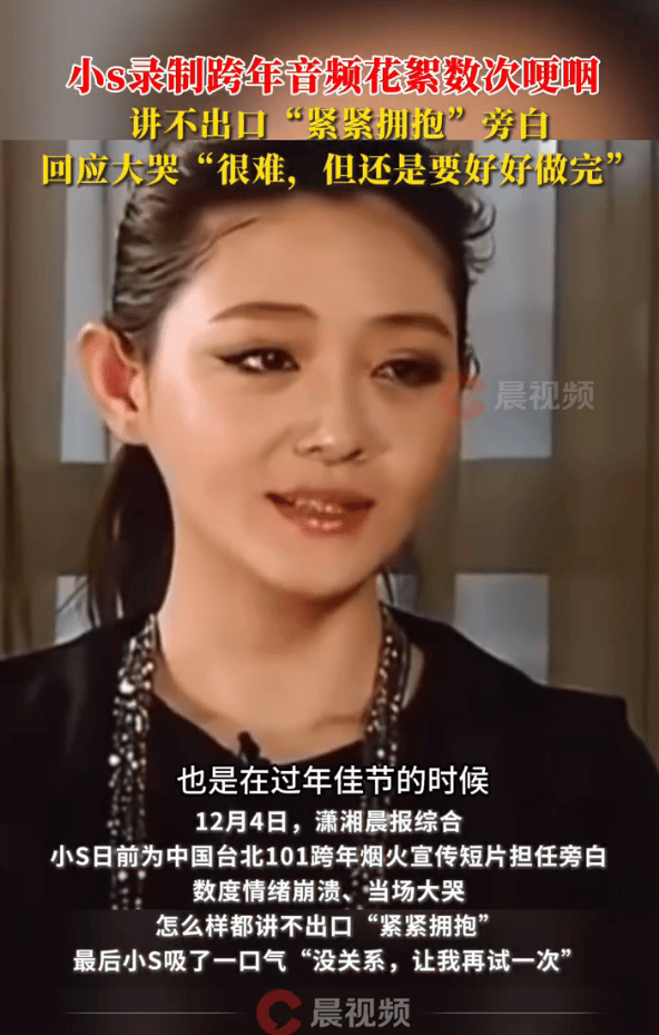 (来源:潇湘晨报)12月4日,潇湘晨报综合,小S日前为中国台北101跨年烟火宣传短片担任旁白,数度情绪崩溃、当场大哭。小S怎么样都讲不出口“紧紧拥抱”,还反问贾永婕“