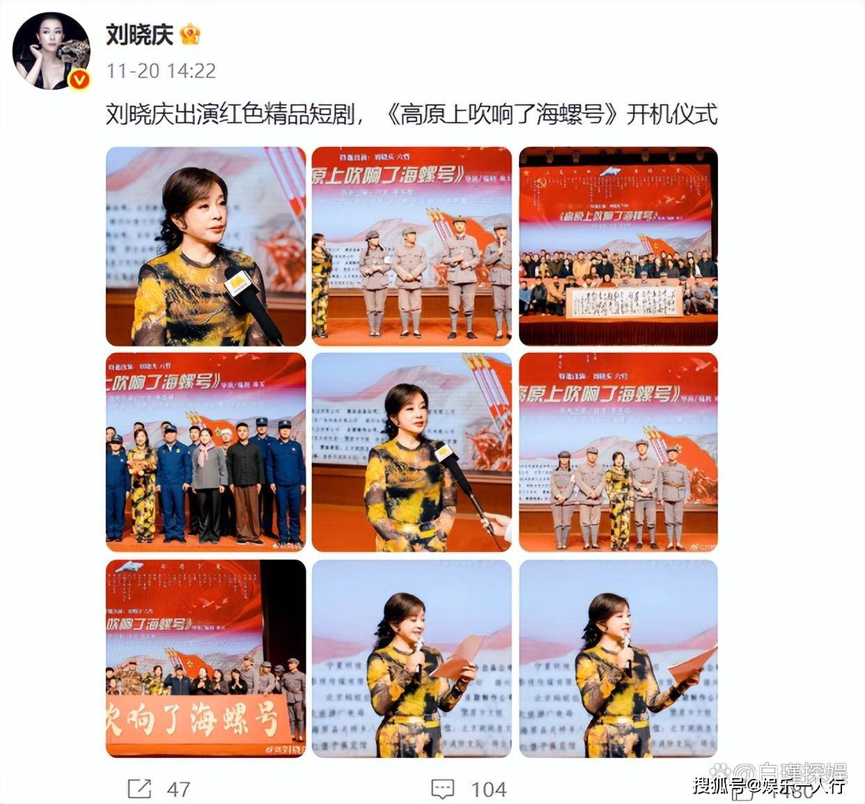 她前段时间有个好消息,就是参加了短剧《高原上吹响了海螺号》的开机仪式,她身穿一身黄黑配色的套装,搭配着一双运动鞋。