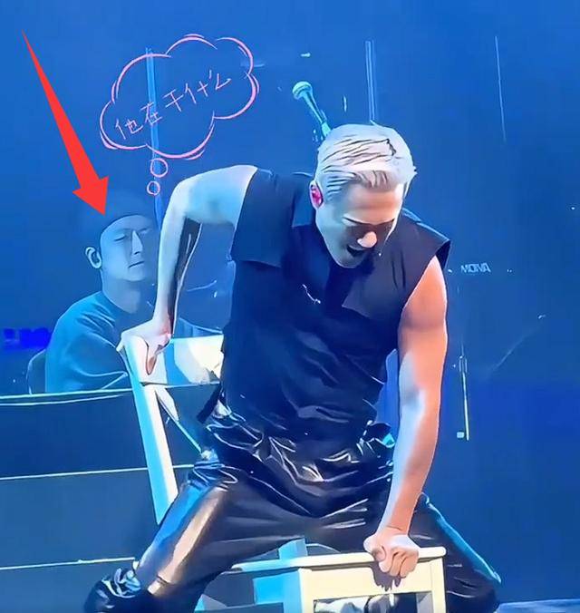 先是双手抓住凳面左右摇晃,接着身体向后仰做wave动作,脑袋随着节奏不停摆动,眼睛几乎全程眯成一条缝,嘴角还刻意扯出邪魅的笑容。