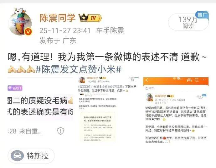 2024年起,陈震多次卷入与小米相关的争议:删除SU7评测视频后又恢复,评测言论被指倾向性明显;频繁使用“这你受得了吗”等标签化表达,被批制造车企对立博流量。部分业内人士指出,他的内容逐渐偏离专业车评,转向“争议驱动”模式。