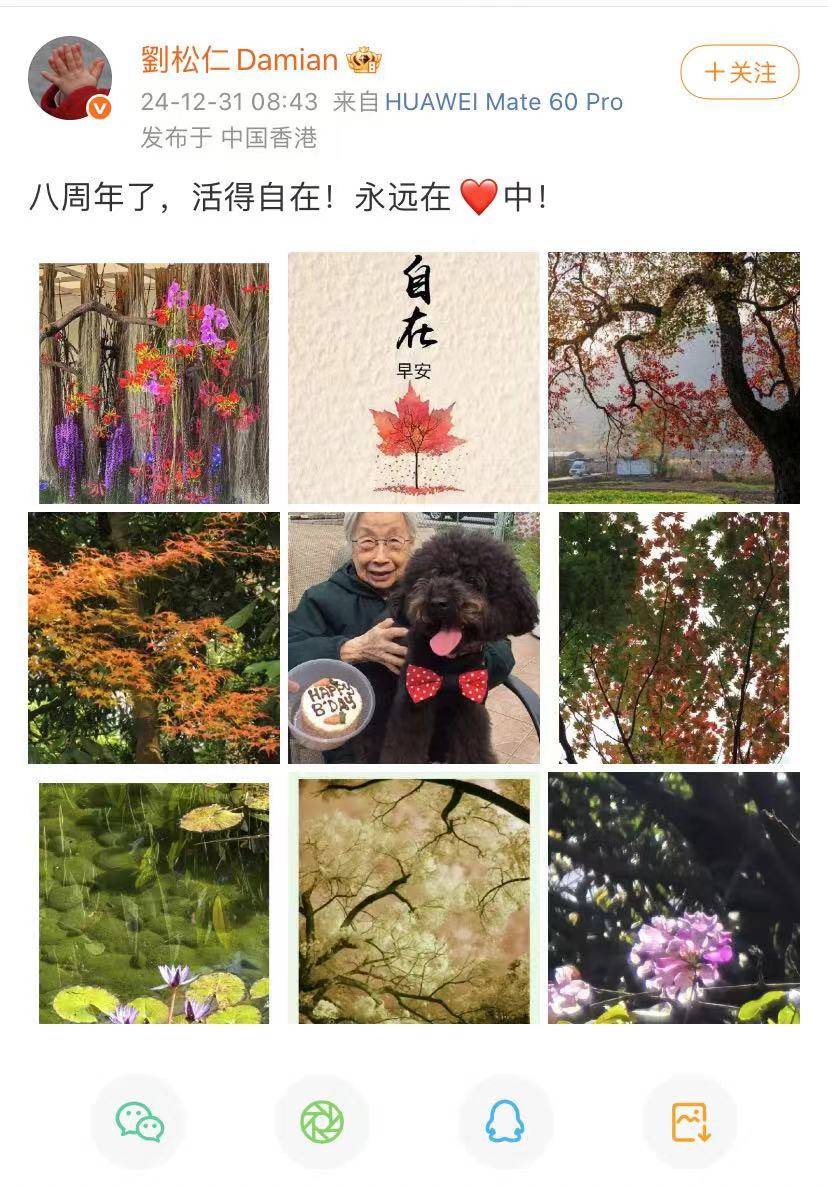 去年底刘松仁还发文悼念母亲,已经去世八周年。