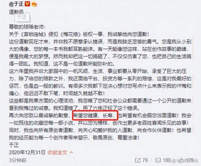 不过这并不是重点,重点是于正还曾被多位编剧、导演等等联名举报,事件也曾引发巨大的争议。