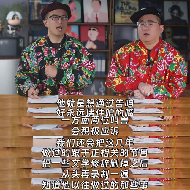 除了回应于正的状告之外,秀才还祭出自己的“大招”,两人表示:他就是想通过告咱,好永远堵住咱们的嘴,那不行,一方面两位叫兽,会积极应诉,另外呢,我们还会把这些年做过的相关于正的节目,把一些文学修辞删掉之后,从头再录制一遍。
