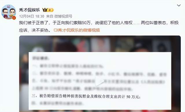 当然,如果于正状告的内容不含有这些信息,那么秀才两人很可能会赔偿,至于具体的50万,想来法院会根据实际情况进行分析,一般来说,不会支持这么多。