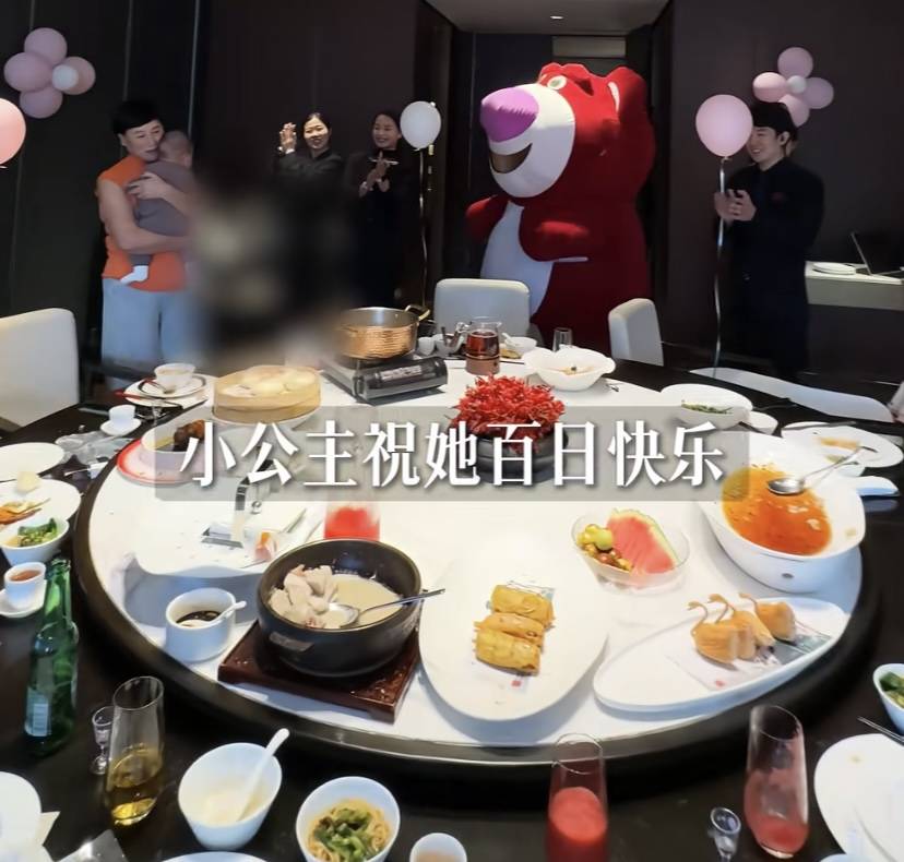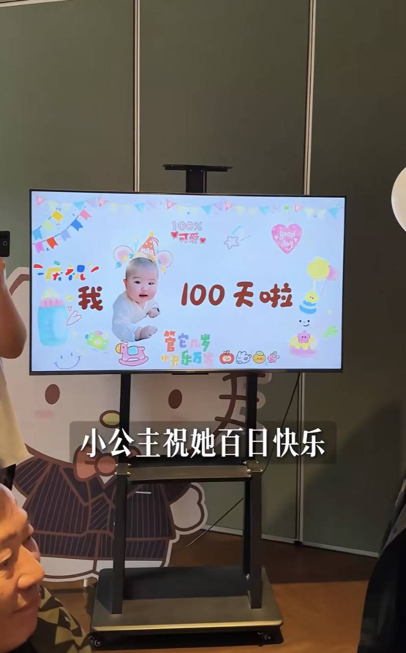 酒店安排了电子屏,上面是甜酒的照片,还用粉色气球布置了一下。甜酒才100天,没必要大肆操办、但该有的仪式感都不会少。这就是父母对孩子的爱,不管孩子懂不懂、该有的都会有。