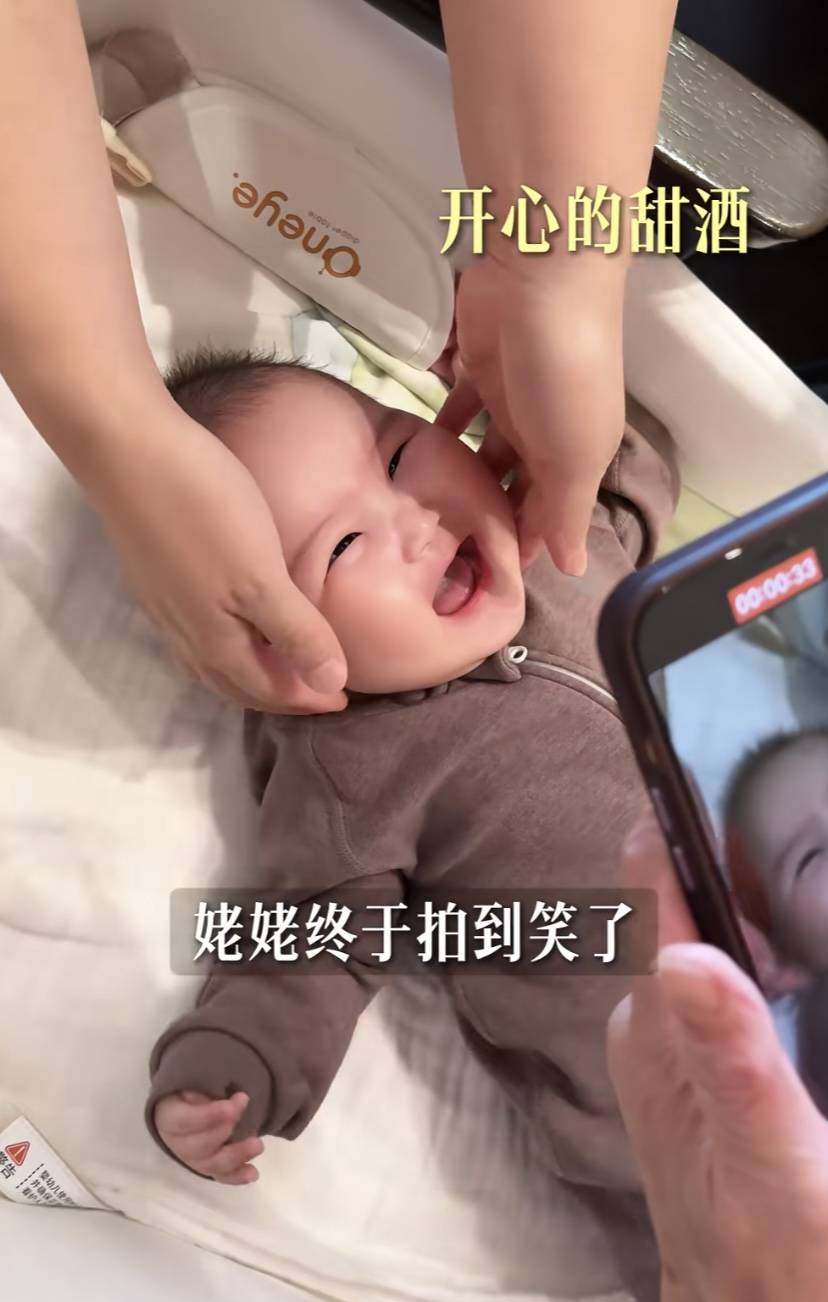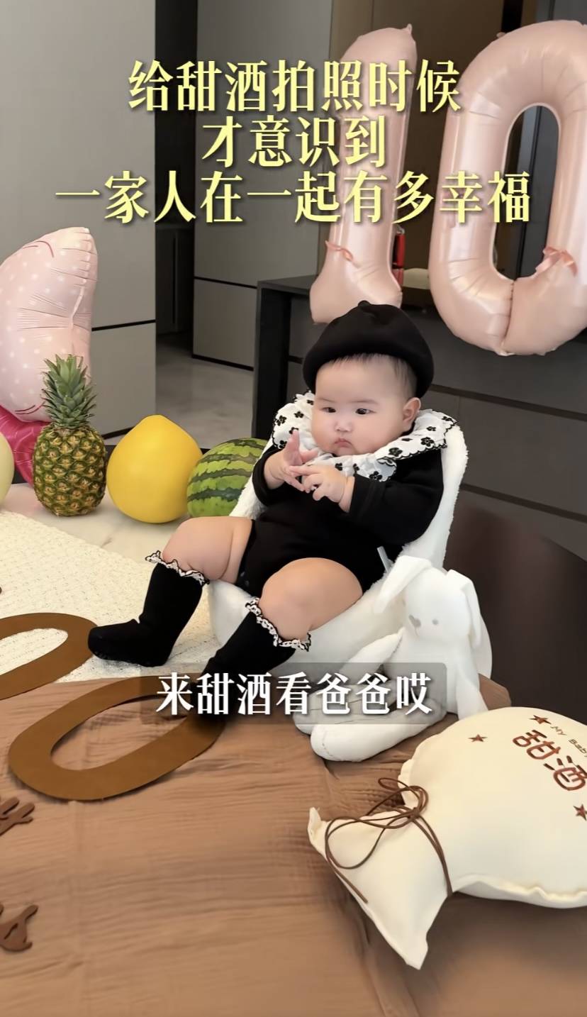 在侯梦莎近期分享的视频里,他们给甜酒庆祝百天、一家人在一起很快乐。甜酒才3个月多,肉嘟嘟的装的非常可爱。小家伙穿着连体的衣服,跟着爸爸妈妈一起看镜头,眼睛很有神。
