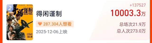 更关键的是,这个“亿”是在一个公认的冷门且人人都说影视寒冬的档期里达成的。《疯狂动物城2》这样的巨无霸还在吸金,后面紧跟着《阿凡达3》虎视眈眈,夹缝里《得闲谨制》硬生生炸出了一片天。