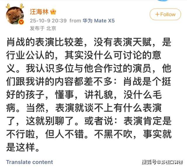 巨大的流量是一把双刃剑,它带来瞩目,也带来苛刻的审视。肖战从《陈情令》爆火至今,始终处在舆论的风口浪尖。这不,老伙计编剧汪海林又又又坐不住了,之前就多次公开批评其演技,但也承认他“人不错、讲礼貌”。这回又先肯定了肖战本人,接着痛锤粉丝,和粉丝在互联网上激情对线,表情包互殴开战。