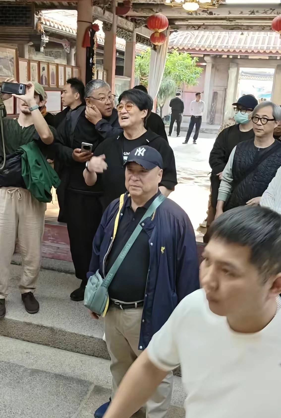 在祠堂前,一大家人还合影了。周华健是典型的国字脸,他们家人的脸型都差不多,即便是上了年纪的人也没有秃头,看得出来基因非常好!