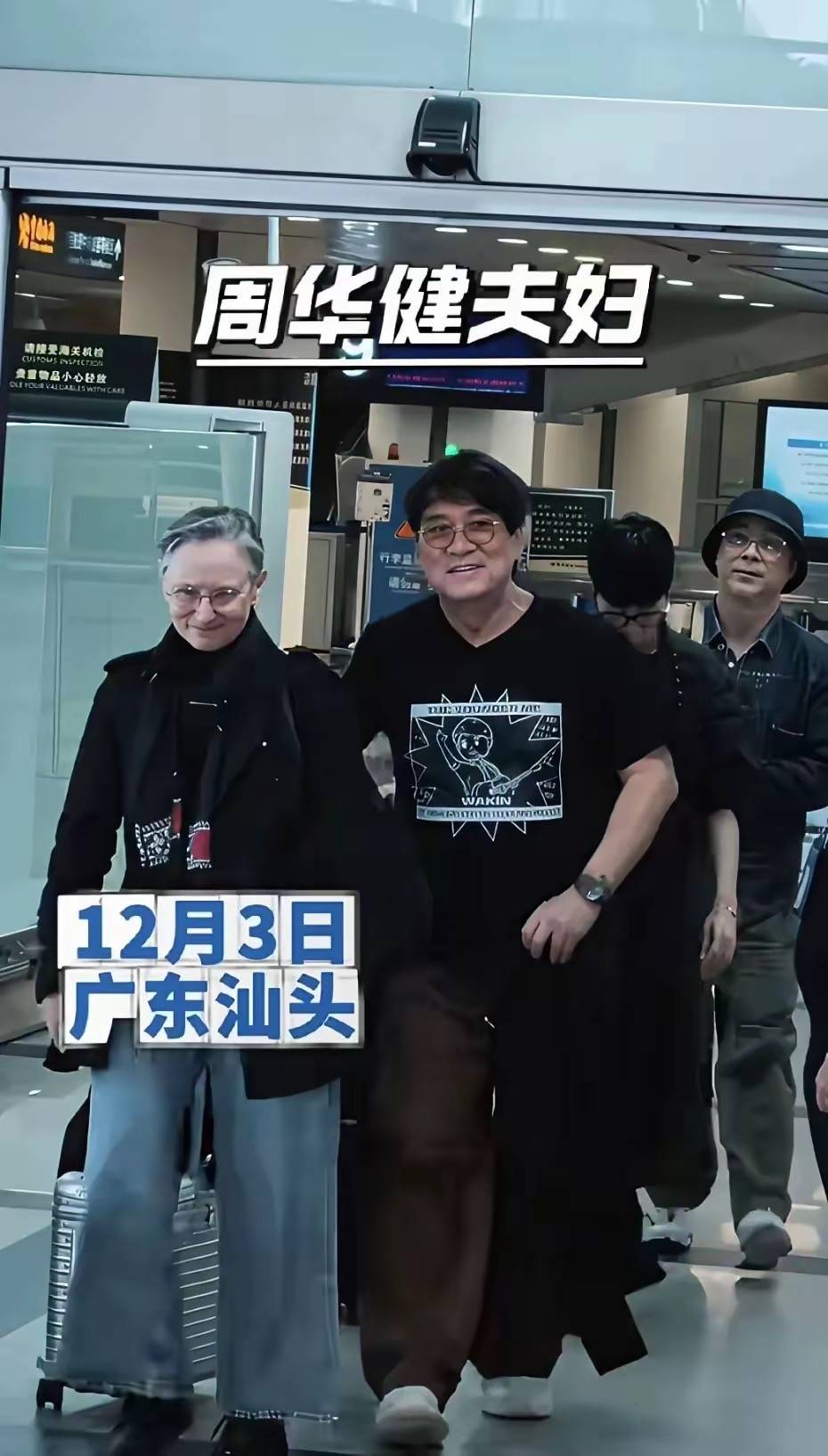 在机场的时候,就有网友拍到了周华健夫妇。周华健的老婆康粹兰和他是同年同月同日出生的,夫妻俩也算是有着特别的缘分。