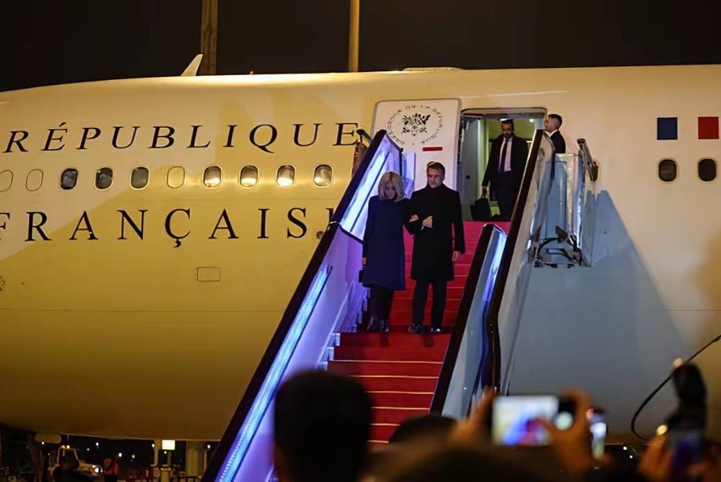 她挽着马克龙的胳膊一起下飞机,马克龙笑得满面春风。他们这次访华之旅被隆重接待,相信未来中法关系也能更加和平友好。