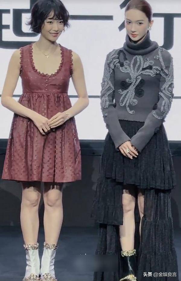 和杨幂站在一起,一个明艳动人,一个温婉大气,网友们直呼:这是什么神仙同框,两大女神我都爱。