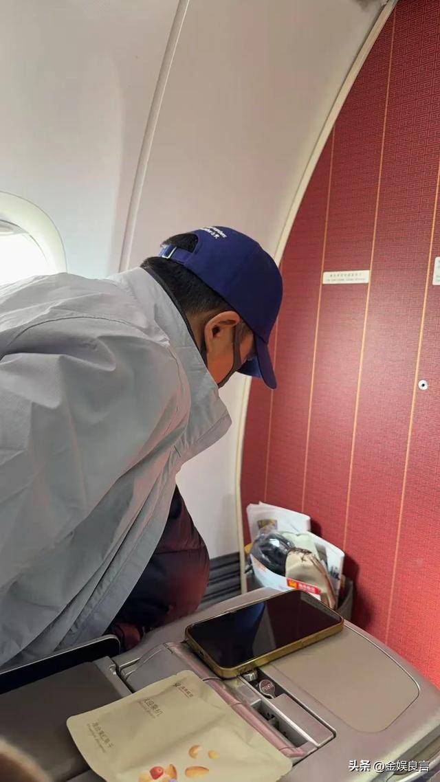 从照片来看,他坐的是头等舱,戴着蓝色帽子和口罩,进来时没人认出他。