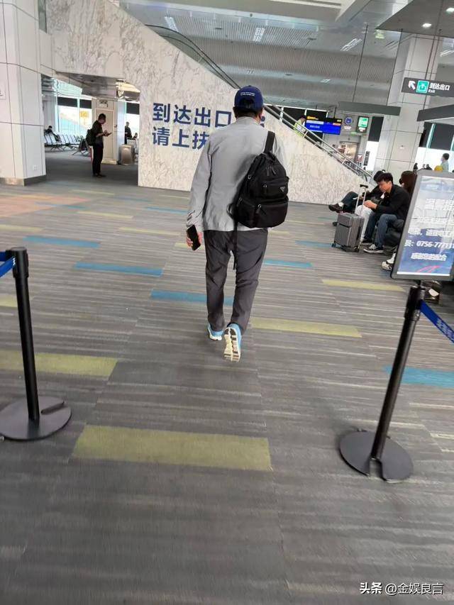 没有助理帮忙提行李,也没有家人陪同,他一个人慢慢走向出口,身影在人群中格外显眼。