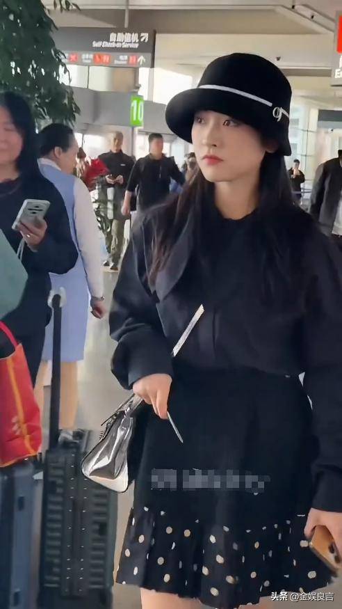 这次机场亮相,沈月穿了件黑色外套,下搭同色小裙子,脚上踩着厚底鞋。