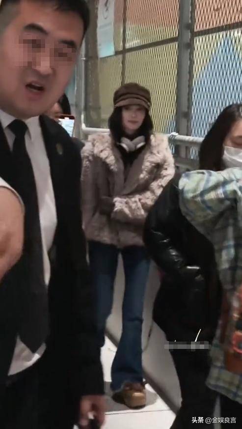 这次机场路透,她走的是贵妇大气路线,咖色毛毛外套搭配牛仔裤,脚上穿着棕色厚底鞋,一身特别的好看。