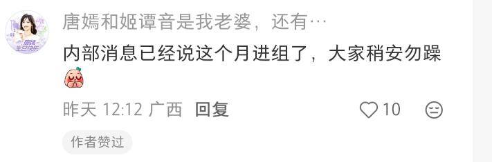 网友的舆论声太大,唐嫣方也坐不住了,通过对接群向粉丝传递了消息,解释“新戏筹备”的意思就是拍戏,她最近就会进组了。