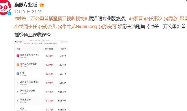 反观她老公罗晋最近的状态却调整得很好,新剧《时差一万公里》刚开播,就在卫视平台收视率登顶。